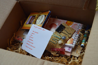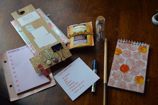 So, here is what I got. A great pen and pencil, a notepad, a to-do list notepad (which I have been using like crazy) a two year planner, a cute little jar, some awesome little office supplies, and some tasty teas.