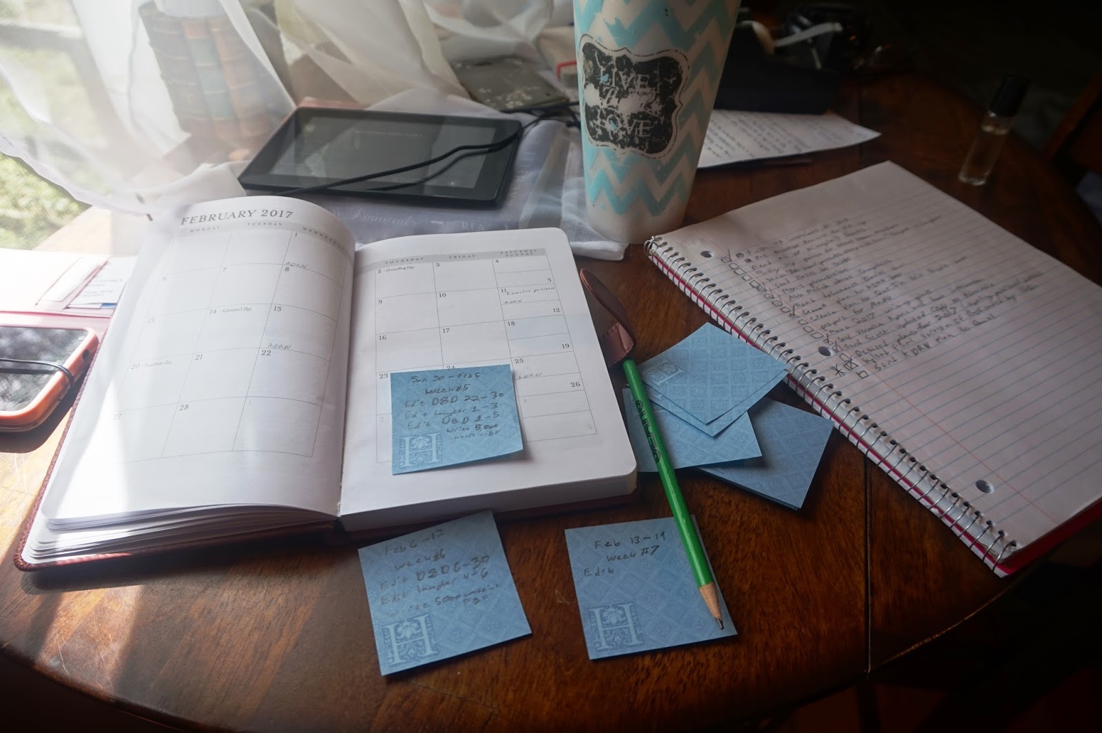 The next step? Break it down into weekly goals. This took most of the day. I had to open documents, consult planners, and look at calendars.