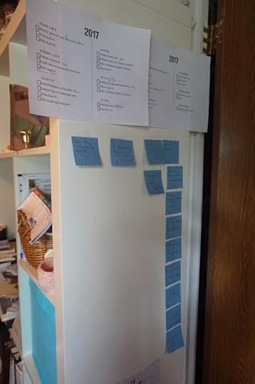 I put the weekly goals on little blue sticky sheets and stuck them at the beginning of the appropriate week of my calendar.