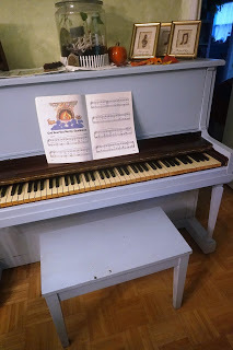 It is my piano bench. I am starting to practice music for Christmas. I teach piano once a week and am trying to get back into the habit of spending some daily time practicing after a few years of sporadic playing. Of course sometimes I get distracted by reading…