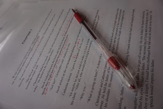 This week, I am reading Courage and Corruption aloud to myself and doing final edits before sending it out to my readers. Reading the book aloud helps catch awkward working and issues I have missed (like the fact I used yes and no, instead of aye and nay). Of course, I have to use my special editing pen. I really do love that pen.