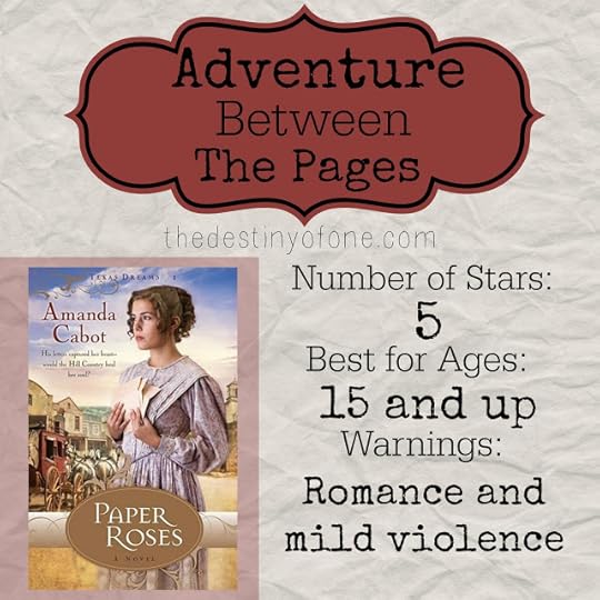 Set in Texas (near San Antonio) in the 1800’s, this book was off to a good start. I am partial to books set in my home state, and this one did a good job of catching some of the Texas flavor without going overboard.