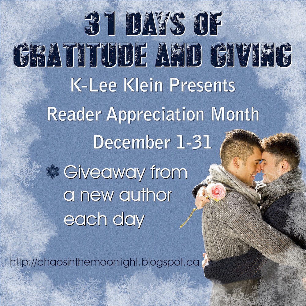 To go with the theme of K-lee's event, I'm giving away a copy of my short Christmas story, Two Ruined Christmas Eves, as well as a copy of my novella, Expanding Horizons. Leave your name and email in the comments and I'll make a draw on December 29th.