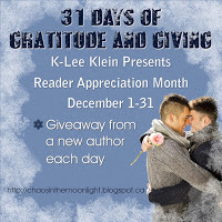 As a general thing, I'm terrible at blogging, which made me nervous when K-lee asked if I'd like to contribute a post for her reader appreciation week. *frets* When she mentioned the topic of gratitude, though, I signed right on because, quite honestly, there is so much in my life for which I'm thankful.