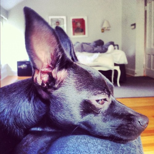 R.J.:I hated dogs. I was bitten by a dog when I was 19. I still have the scar, right by my nose, and my first thought was, "now I'll never be a model". Jake has always had and loved dogs. We would go to Runyon Canyon in Los Angeles during what we called "doggy rush hour" which was at about 5pm after work, and we would watch dogs on our hike and be like, "oh look at that one" or "if we had a dog, that’s what we would want".