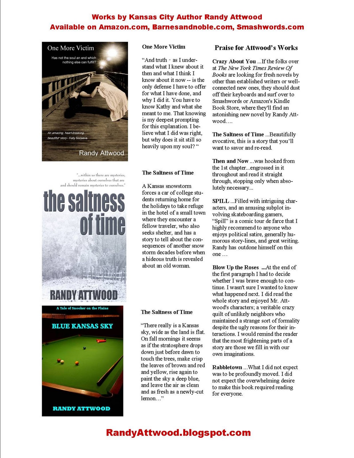 Who are these people? Nothing sells better than free, I know. And then you start to think, well, if they read it and like it, they might come back for more of my works and pay for them. We'll see. One encouraging sign: a downloader sent me a wonderful email and wrote a very nice review http://bunnysreview.blogspot.com/2011/12/one-more-victim-by-randy-attwood.html