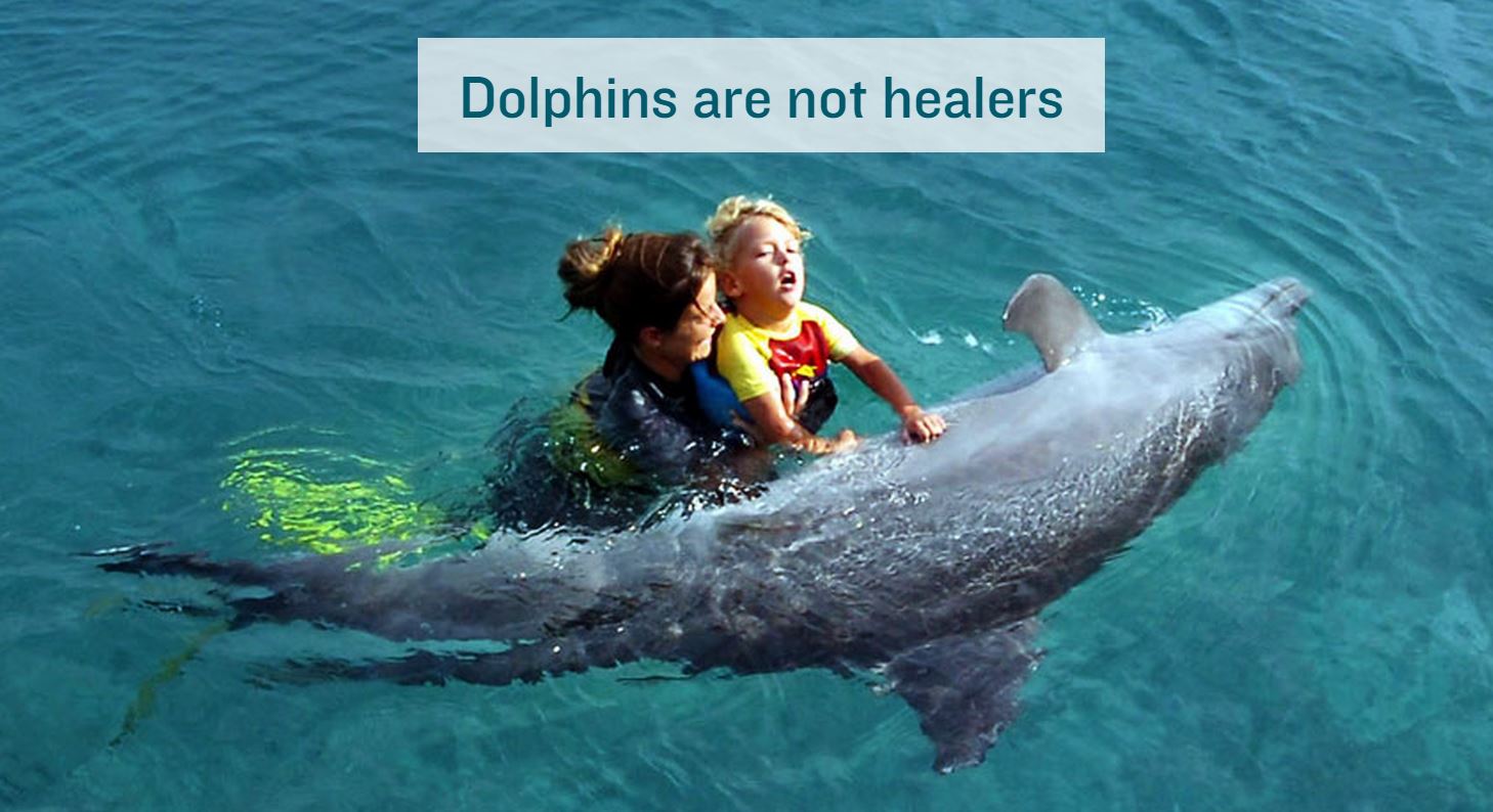 Imagine this. Jay, an eight-year-old autistic boy, whose behaviour has always been agitated and uncooperative, is smiling and splashing in the pool. A pair of bottlenose dolphins float next to him, supporting him in the water. Jay’s parents stand poolside as a staff member in the water engages him in visual games with colourful shapes. She asks him some questions, and Jay, captivated by his surroundings, begins to respond. He names the shapes, correctly, speaking his first words in months. With all this attention Jay is in high spirits; he appears more aware and alert than ever before. A quick, non-invasive EEG scan of his brain activity shows that it is indeed different from before the session.