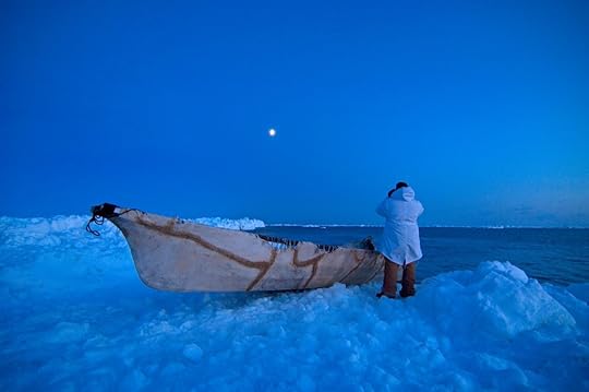 Inupiaq whaler with seal skin umiak waits for passing bowhead whales during spring whaling season Chukchi SeaBrower felt the shuddering harpoon enter the whale’s body. He looked at the faces of the men in the umiak, including those of his own sons. When he awoke in his hospital bed as if from a trance, he knew precisely which man had made the kill, how the whale had died, and whose ice cellar the meat was stored in. He turned out to be right on all three counts.