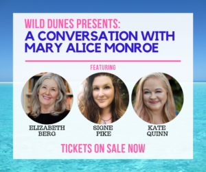 Mark your calendar for “Wild Dunes Presents: A Conversation with Mary Alice Monroe” featuring distinguished authors Elizabeth Berg, Signe Pike, and Kate Quinn. Join us January 19th at the world-class resort located in my island town, the Isle of Palms, South Carolina.