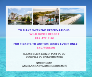 For the first time ever, Wild Dunes Resort is offering a VIP Weekend Package with this event. The deal includes a 2-night stay, 2 tickets to the author series with reserved seating, plus 2 tickets to additional exclusive events to enjoy during your weekend trip.