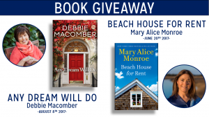 Speaking of books, my friend and author Debbie Macomber and I are celebrating the summer reading season with a special book giveaway. Three people will each win an advanced copy of Debbie’s new book Any Dream Will Do (available Aug. 8th) and a copy of my new book Beach House for Rent. Click here to enter the giveaway.