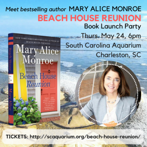 Join New York Times and USA Today bestselling author Mary Alice Monroe at the South Carolina Aquarium on Thursday, May 24 from 6:00 – 8:00 p.m. to celebrate the launch of her new novel, “Beach House Reunion.”