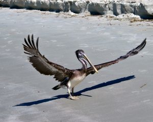 All of my novels written since moving to my beloved island town always highlight a species. Sea turtles certainly play an important role in this new story (Cara Rutledge is in the book after all, so it had to be!). But I also introduce you to new species–migrating shorebirds and the beloved brown pelican. They are common sights here.