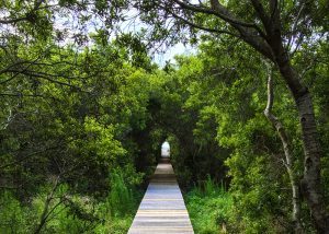 Welcome to Dewees Island! A slightly weathered sign hangs from the ferry dock when you arrive, and it is my regular joy to introduce visitors to Dewees Island. A private barrier island accessible by boat from the Isle of Palms, Dewees has only 150 homesites and over three miles of pristine beach. To our north, Capers Island, Bull Island, and the lush waters of Cape Romain National wildlife refuge combine to form the largest undeveloped (and protected) stretch of coastline on the Eastern Seaboard. The entire island of Dewees is in a conservation easement, and it’s kind of like living in a National Park. We can only disturb 7500 square feet of footprint per home, and only native plants are planted: lawn care is NOT how we spend our time. At full build-out, over 94% of the island will remain natural and pristine. We do have a clubhouse and pool and tennis, but instead of a golf course, we have a nature center and pristine forests, wetlands, and dunes. Mary Alice Monroe’s readers are introduced to Dewees Island in Beach House for Rent. Here’s a short passage: