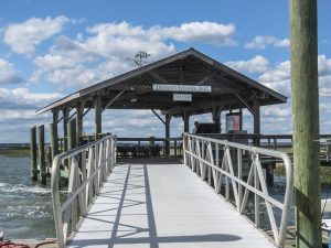 Fifteen minutes later she spied the white beaches of Dewees Island and, closer, the island’s dock. The captain reduced speed and neatly maneuvered the ferry into the dock…