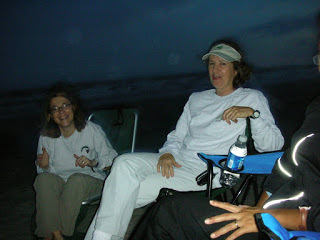 It wasn't the best of conditions on the beach for them. The moon wasn't bright, and sadly-- and frustratingly-- some homeowner (who should have known better) left a bright light burning on her outside porch. It was a hassle getting all the hatchlings to the sea without them turning toward the bright light --and certain death. Plus, the sea was still far out and these hatchlings faced a long journey across two galleys to reach home.