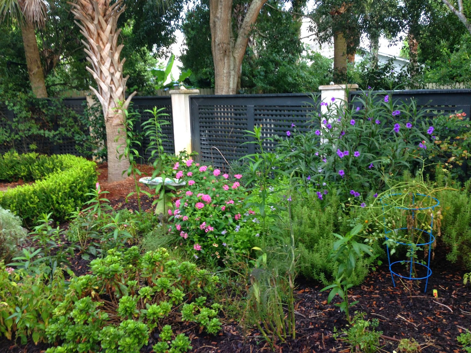 I have a "rear" garden for host plants that can look raggedy after the caterpillars chew it up. But that's what its there for! I refer to this patch as my "host" garden. In the early summer I tossed in a few tomatoes, too. There is milkweed, passion vine (for the Gulf Fritillary) dill, fennel and parsley (for the swallowtails) rue and paw paw.