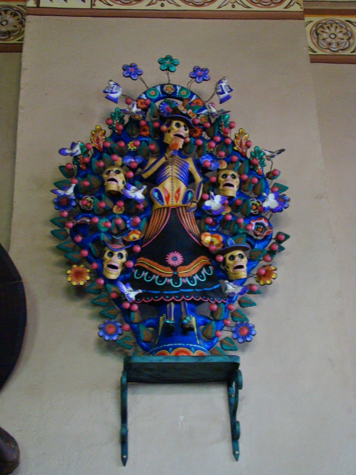 I like to create a simple ofrenda in honor of my parents and my father-in-law. I put their photos up amid bright orange marigolds, a decorated skull plus a few items that they loved and each time I pass it during the day I think of them. Again, memories... This, to me, is the power of The Day of the Dead. We remember and talk about those who've departed, and by doing so, we keep their memories alive in our hearts. This Halloween, rather than just dress up and eat candy, why not share a meaningful activity with your family? Create an ofrenda. Get the kids involved. Display favorite photos and treasured items of those special family members, light a candle and then invite the family together to hear stories of your grandmother, grandfather, parents, uncles, aunts. The poignant stories, the funny ones--they all keep their memories alive! These are the real treats of this season.