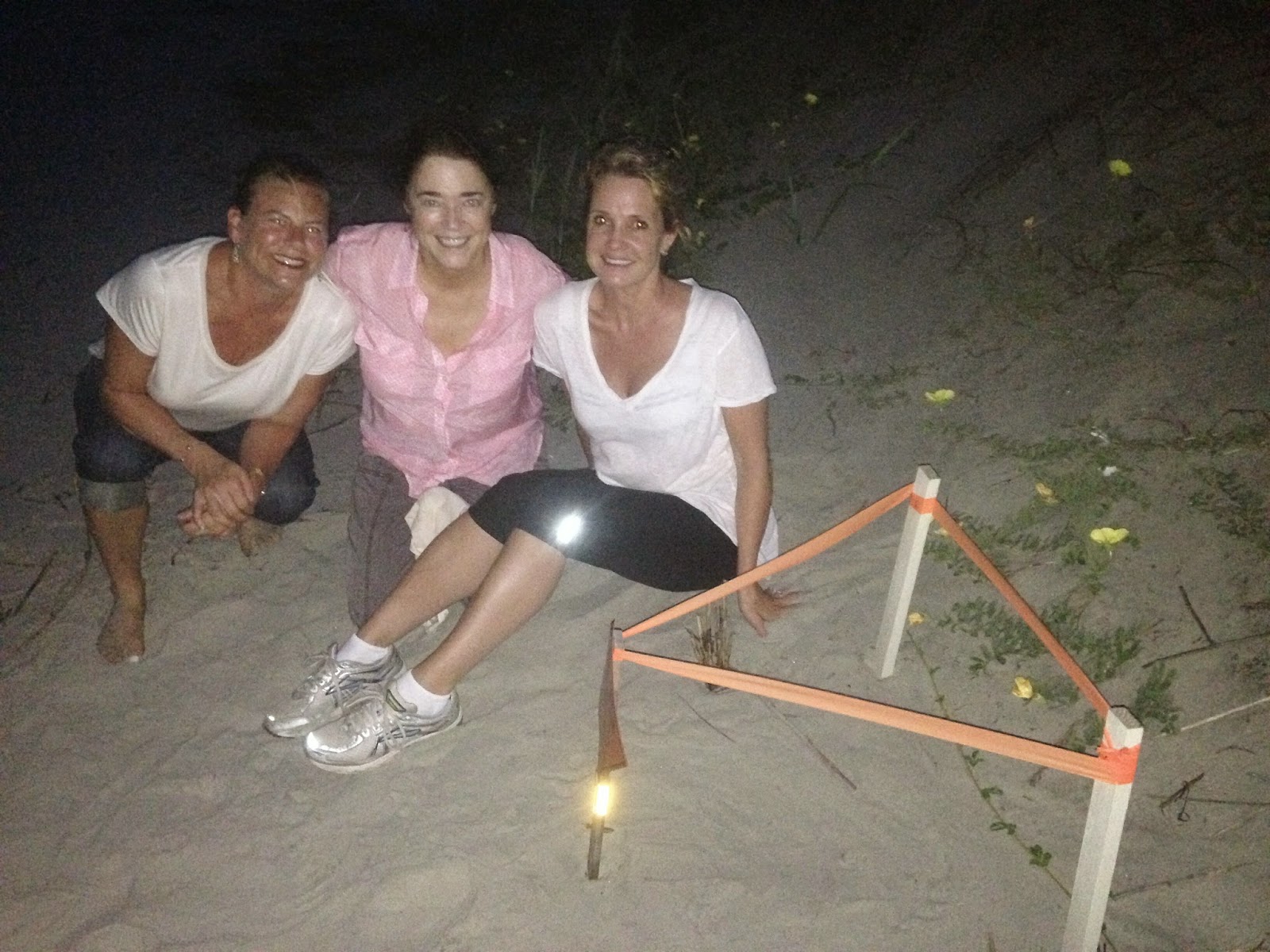 I loved every encounter, but I craved the zenith of turtle monitoring. I wanted the boil – hatchlings pouring out of a nest like a pot bubbling over. Then along came 3A. A convenient ten-minute walk down the beach from my house, this became MY nest. I’d find excuses to wander by (“It rained a drop . . . better check the nest!”). I sent unsolicited “updates” and photos to team members. I pestered them about the schedule. One day, my stalking was rewarded. The sand showed the first signs of emergence, kicking off a series of evenings camped beside the nest.