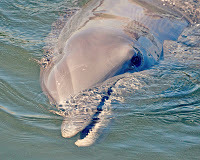 Watching a dolphin in the wild is thrilling. Their ability to canvas great areas of the sea while still maintaining family and community bonds is impressive. They use a series of whistles (including a "name" whistle), clicks, and of course their unique echolocation, a sonar like ability. They are fast swimmers, great hunters, able to hunt using group strategies, and form bonds that last a lifetime. Smitten, we are tempted to reach out to wild dolphins, to jump in the sea and swim with them, to feed them a fish or two in the boat, (or candy, a sandwich, etc), or to lure them to the dock to communicate. We think, "Oh, what harm can this one tidbit do?" Well, multiply that tidbit times 1000 and you get the picture. Feeding wild dolphins encourages begging. Think of the bears at Yosemeti Park. Yes, sad, isn't it?