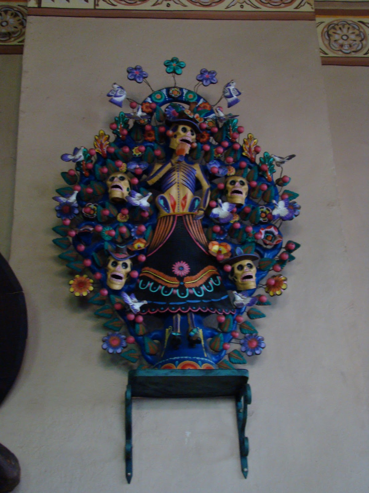 • I have a new appreciation for the Mexican arts. Mexico is well known for its silver, but did you know that many of the great silver mines have closed? I visited Santa Clara del Cobre a town known for copper artisans. The art of making copper sinks is an ancient tradition. I had to have a gorgeous, small hand hammered copper sink which my darling husband carried home. I truly fell in love with the pottery, from the famous Televara to the intricate, vibrant green pineapple pots. There is so much art! Wood, clay, paper mache, contemporary, religious…. Seeing the artisans in Michoacán left a lasting impression, as did the genuine friendliness of the Mexican people there.