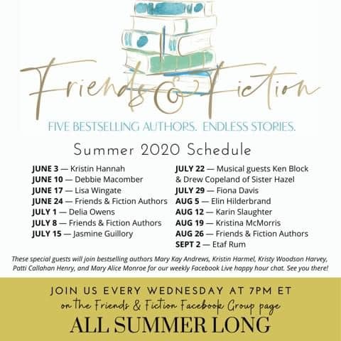 The Friends & Fiction summer schedule of guest authors is out. It’s an incredible line-up of writers joining us on Friends & Fiction. If you haven’t tuned in to our weekly Wednesday, 7PM ET live stream on Facebook, you’re missing out!