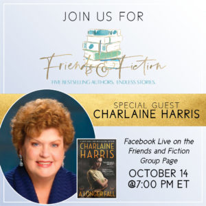Also happening that evening on Friends and Fiction, we’ll welcome the legendary Charlaine Harris as our guest. 2021 will mark Charlaine’s 40th year as a published writer.
