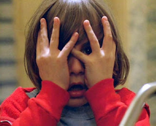 Two particular scenes stand out to me regarding this logic, beyond the magic realism ending. One is the scene in which Yori with great certainty and with childish exuberance, while playing on the stairs leading to torī gates and climbing a jungle gym that resembles a multicolored spiraling tower, assures Minato that the universe is expanding and will one day reach its limit, after which things will go back to the way they were (see apokatastasis and my post about Buñuel's film "Simon of the Desert"):