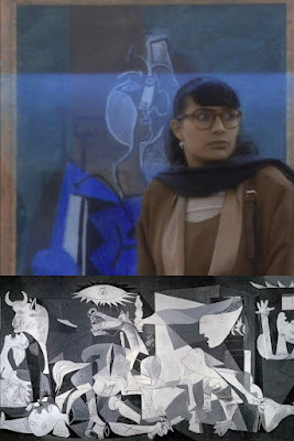 Before I move to Guernica, though, I'd like to point out my translation of "La Violencia" to "the essence of violence" rather than just literally "the violence." Spanish is a language rooted in Latin as well as Arabic and of course has elements of ancient Greek and Sanskrit. Like other Romance languages, nouns or subjects have either masculine or feminine connotations, or sometimes but rarely both. And so nouns have this "essence" that demands the article "el" (for masculine) or "la" (feminine). In English, it would sound strange to say "Ah, long live the love," where in French everyone says, "Ah, vive l'amour," and in Spanish, "¡Viva el amor!" Therefore, "La Violencia" seems better translated as "The Essence that Is Violence" as awkward as that would sound. It does demonstrate the nature of the language better.