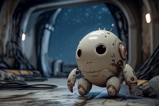 A robot barged in and spun in circles on the floor at his feet. It flashed the magenta numeral one over its egg-shaped body. It had stubby arms and legs good for no purpose.