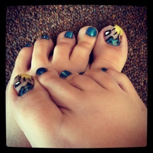 My teen–yes, no longer a tween as of today–gave me the cutest pedicure today! Perfect for one of my upcoming books, since it takes place at the beach. I won’t tell you which one. It’s a seeeecreeeetttt!