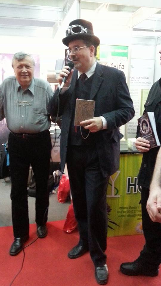 În continuare, colegul meu scriitor Oliviu Crâznic a definit pentru beneficiul celor prezenţi subgenul literar steampunk. De asemenea, dumnealui a amintit despre prima mea proză steampunk, "Legiune", apărută în 2004, şi despre unele schiţe umoristice pe care le-am publicat de-a lungul anilor.