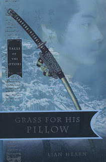 , am rămas cu o impresie plăcută, aşa încât, în august 2015, am parcurs al doilea roman din serie, Grass for His Pillow (Young Picador, Londra, 2004). Şi iată ce am aflat:Acţiunea romanului este împărţită în două planuri narative. Cel dintâi relatează în omniscienţă selectivă evenimentele prin care trece Shirakawa Kaede după uciderea lui Sadamu Iida şi pieirea lui Otori Shigeru. Cel de-al doilea este narat, la persoana întâi, de protagonistul-narator Otori Takeo.