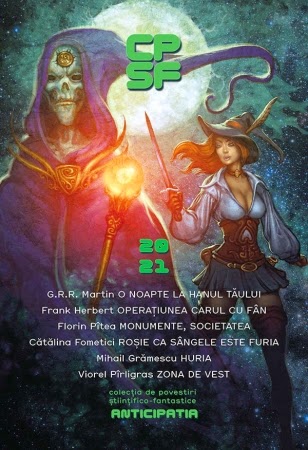 Spre finalul lunii august 2014, prin amabilitatea domnului redactor-şef Marian Truţă, am primit un exemplar din numărul dublu, 20-21, al Colecţiei de povestiri ştiinţifico-fantastice Anticipaţia (Editura Nemira, Bucureşti, 2014). L-am parcurs cam într-o săptămână. Şi iată ce am aflat:Acest număr foarte consistent începe cu o nuvelă de George R. R. Martin, "O noapte la Hanul Tăului". Deşi versiunea română, în traducerea Antuzei Genescu, nu specifică asta, nuvela a fost scrisă special pentru antologia Songs of the Dying Earth, îngrijită de George R. R. Martin şi Gardner Dozois, publicată în 2009 în onoarea maestrului Jack Vance şi plină de poveşti încântătoare... despre care am să vă relatez cu altă ocazie. "O noapte la Hanul Tăului" prezintă întâlnirea unor personaje fantastice, precum Molloqos cel Melancolic, Chimwazle sau Lirianne, la un han, pe Pământul Muribund al lui Jack Vance. Pe măsură ce acţiunea se derulează, surprizele şi întorsăturile de situaţie se ţin lanţ. De remarcat şi grija cu care Martin a pastişat stilul pedant în care vorbesc personajele lui Vance.