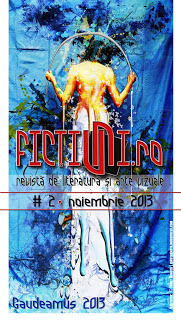 Tot ieri a apărut numărul al doilea al revistei virtuale Ficţiuni.ro. Sumarul include un editorial semnat de redactorul-şef Eugen Lenghel, proze scurte semnate de Ştefana Czeller, Lucian Dragoş Bogdan, Teodora Matei şi alţii, interviuri realizate de Ionuţ Bănuţă, lucrări grafice de Viorel Pîrligras şi Nicu Gecse, cronici de film de Ionuţ Bănuţă, Mihnea Columbeanu şi Jovi Ene, traduceri de Nicu Gecse şi Ion Luca Caragiale, un discurs de Neil Gaiman în traducerea Lianei Tomescu, un incitant articol de Ştefan Ghidoveanu şi cîteva ştiri interesante. Am remarcat atît lucrările grafice care însoţesc numărul 2 al revistei - realizate de Ionuţ Bănuţă - cît şi prezentarea atractivă.