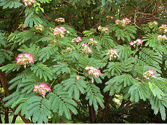 When I was small, mimosas were my favorite kind of tree. For one thing, they were just the right size. I wasn’t athletic and I’ve never had a head for heights, but I could easily “climb” into the low fork of the mimosa in our backyard and stay in my little tree nest for the longest time.