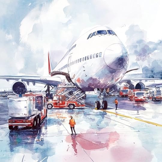 I began to notice the airport ground crew, some in a rush, some not so much. There were people loading cargo bags, others driving trucks with what looked like food containers, and even more people that it wasn’t clear to me what they were doing.