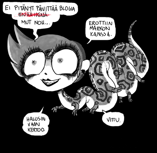 Enkä saanut järkevää sarjakuvaakaan piirrettyä. Piti vaan päästä kertomaan.