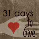 For the next 31 days (the entire month of October) I will be participating in thechallenge to blog here on my blog every. single. day for the next 31 days. My topic? Giving!