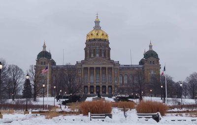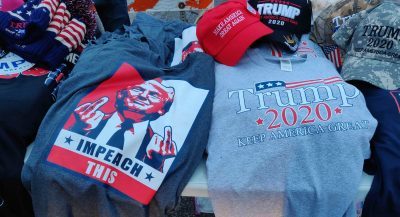 Snowy, somnambulent start to first full day in Des Moines. Rally for Donald Trump yesterday at Drake University was oversold. It’s a whole traveling road show with sweatshirts for supporters that read “Impeach This,” among many slogans that are more crude, and a jumbotron for the overflow crowd.