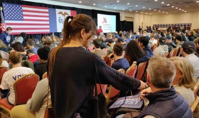 It’s big on an Iowa scale, though. The Democrats expect record participation. Party chairman Troy Price expects more caucus-goers than the record year 2008 (the first Obama election). In anticipation, besides the usual gyms and firehouses, libraries and churches, Iowa Democrats have signed up private venues like the Science Center of Iowa and the Iowa Events Center, capacity 17,100.