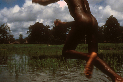 All these houses of trees and vines stood higher than a person off the ground against animals, flooding and nat nats, or mosquitoes. The littlest baby, just three weeks old, slept under a mosquito net, one of not many concessions to the modern age. Seven poles lashed to two longer ones comprised the ladder to the door. Clay fire-pots allowed cooking inside. Drums, pots and baskets dangled from the rafters.