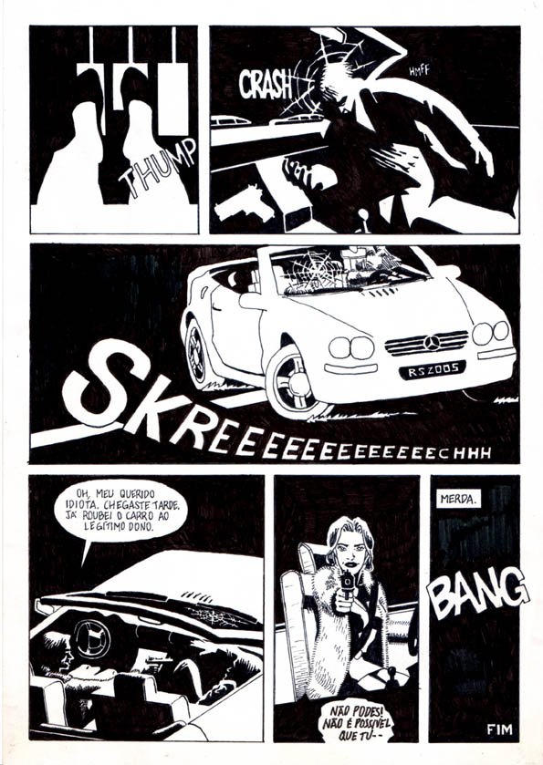 O Gabriel Martins foi o meu argumentista para um concurso de BD, o II Concurso de Avenida Marginal. O argumento é chamativo, fã como sou do tema de Viagens do Tempo, e acedi com prazer ao pedido dele. Ele disponibilizou a BD no blog dele aqui, não se esqueça de fazer-lhe uma visita. Deixo aqui a página na versão arte-finalizada.