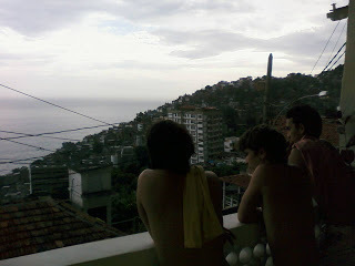 Neste final de tarde, o Vidigal parece o morro místico de uma saga de romances fantásticos. Sento-me na garupa de um mototáxi e galgamos as pedras escorregadias de chuva, serpenteando por entre carros e pessoas, até entrarmos na rua 3. Silvo o meu assobio de identificação e Gonçalo vem abrir-me a porta. Tem barba de islamita ou de hippie e prepara-me um café. Veste um t-shirt ruça, onde o boneco verde dos Bolicaos, com barba de vários dias, diz: "Tou de férias."Metemos a conversa em dia e ele pega no violão. Toca música que compôs para letras em que colaborámos: "Vagão Rosa", "Sem sorte nem Nova Iorque", "Namoradinha Farrapa." O outro habitante da casa acorda. André, alemão de Woslfburg que contraria o cliché da falta de sentido de humor dos germânicos, esfrega os olhos e serve-se de café. Ficamos a conversar sobre a crise na Europa, sobre o jogo que enfrentará os nossos países, no Euro, este fim-de-semana, sobre disparates, histórias de cama, o tempo que fará dos próximos dias.