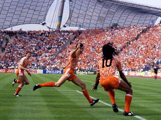 Nesses jogos de recreio, calhou-me ser da Holanda, e embora desejasse que me chamassem Marco van Basten, tínhamos Jaime, o Pescador, na equipa. E Jaime, que, mesmo quando jogava de galochas na lama tinha ginga para sentar três adversários enquanto galgava para a baliza, colheu sem contestação o nome do avançado holandês que marcaria um golo, sem ângulo, no jogo da final contra a URSS, com uma precisão que parecia acaso, e com um aprumo que só aqueles que voam podem alcançar.