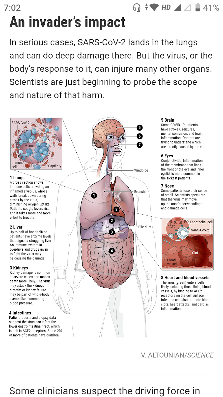 It’s one of several unexpected complications from the virus, which was initially thought to just cause respiratory problems, though highly severe ones. Doctors are also seeing issues with heart inflammation, kidney disease and liver problems in their patients, and believe it may be due to changes in the blood.