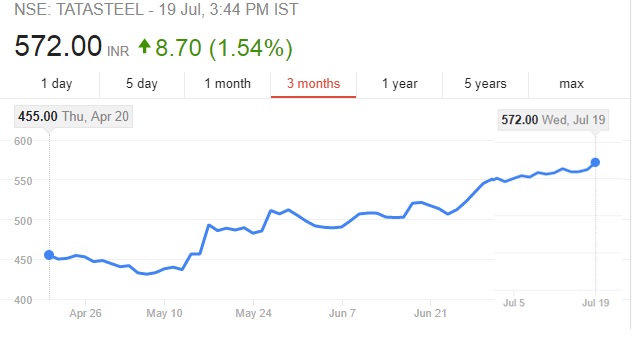 Steel Major TATA STEEL has shown wonderful growth for last 3 months .