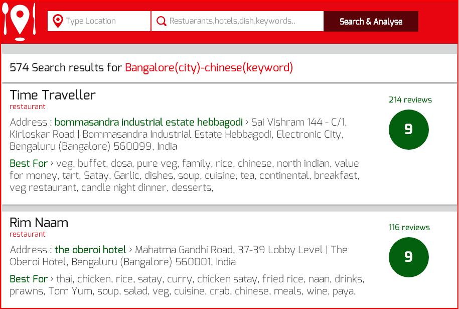 For example , one of the most popular taste of Bangaloreans is Chinese , and a single tap can then give you top Chinese restaurants & hotels , with the sorted best suited and crafted ones for you on top.