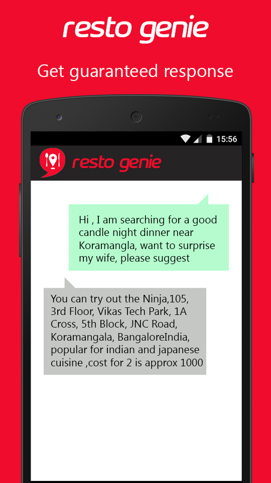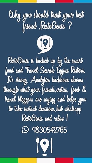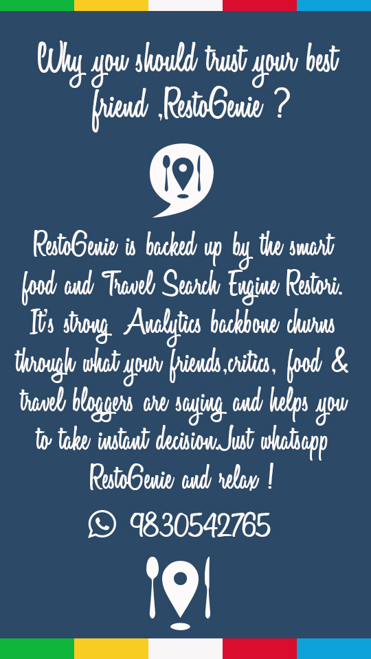 Confused where to dine? Unable to make the right travel plans? Partying and running out of food ? No worries, now RestoGenie is here. Whatever your query be, Restogenie is at your command. Backed up by the smart food and Travel Search Engine Restori ( www.restori.co ) , It's strong Analytics backbone churns through what your friends, critics, food & travel bloggers are saying and helps you to take instant decision.Just whatsapp RestoGenie at +91-9830542765 and relax