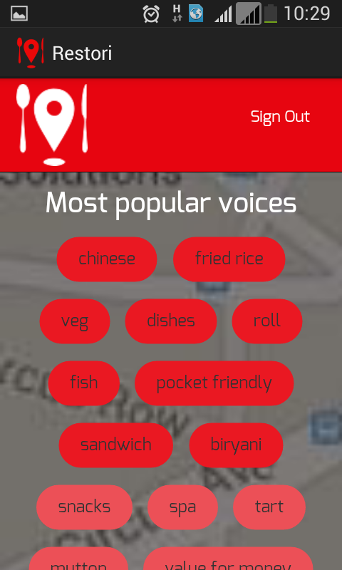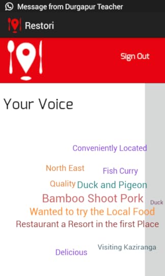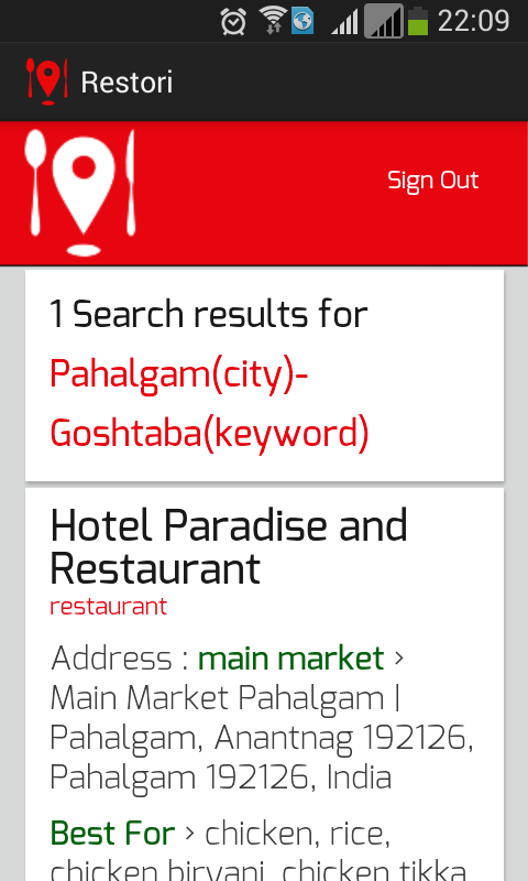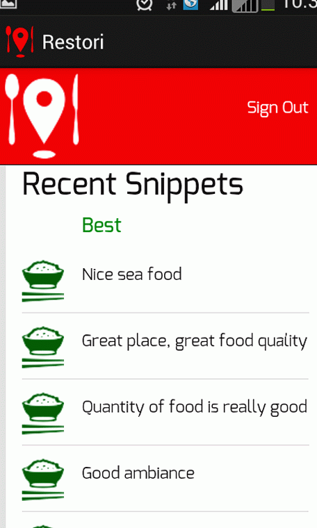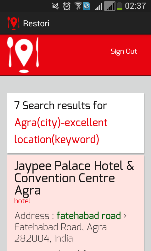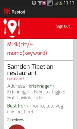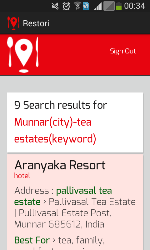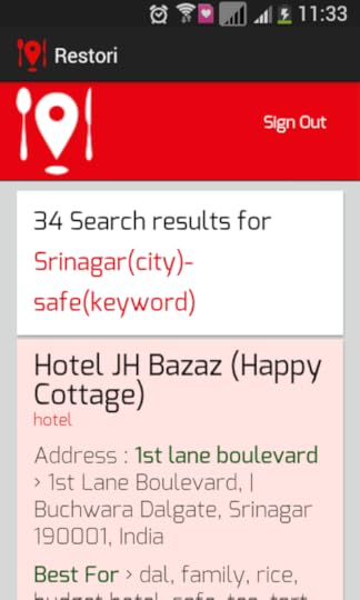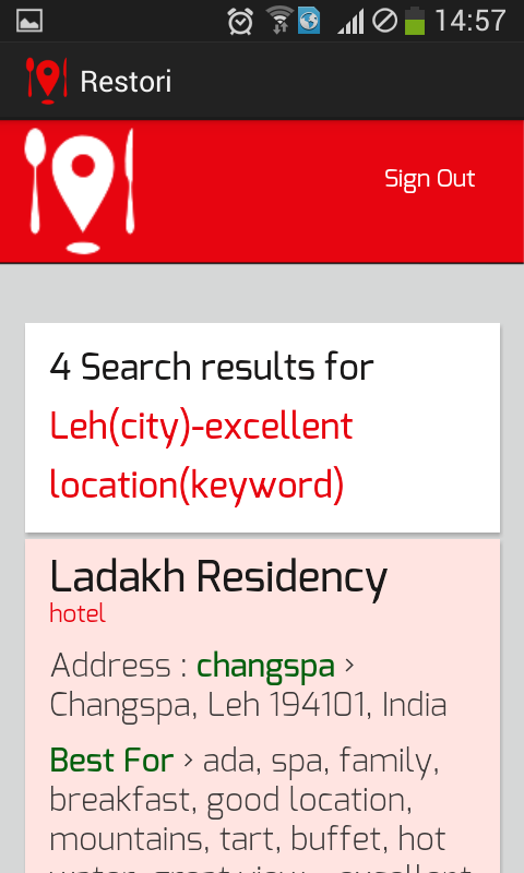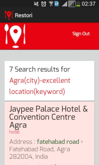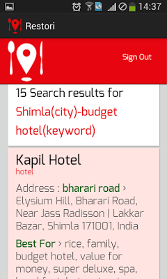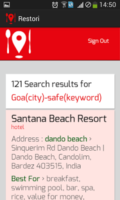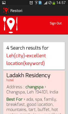 #Restori helps you in QUICK SEARCH by having more than 10,000 + key words ( e.g. Happy Hours, value for money, draught beer, candle light dinner, safe hotel, mountain view,Elaichi Raan,pure veg, cost range like 500-1000 and others, Sea Beach, dinner buffet etc) so that you can quickly y search on the Go.